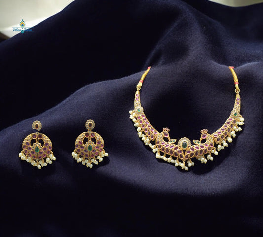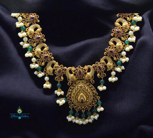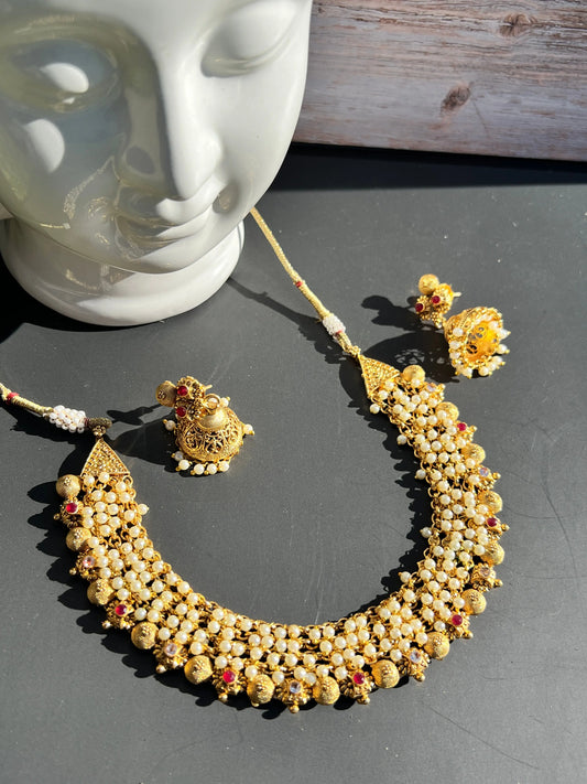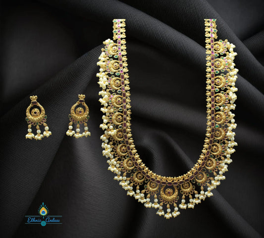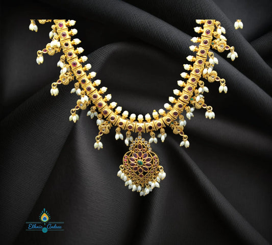 1gm Gold Ethnic Sets: high quality, perfect for traditional wear, set with semi precious ruby emerald and stones