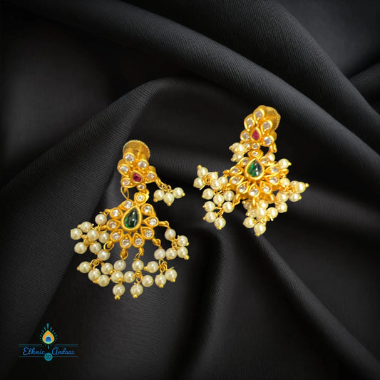 1gm Gold Ethnic Sets: high quality, perfect for traditional wear, set with semi precious ruby emerald and stones