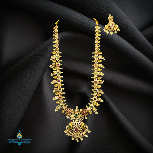 1gm Gold Ethnic Sets: high quality, perfect for traditional wear, set with semi precious ruby emerald and stones