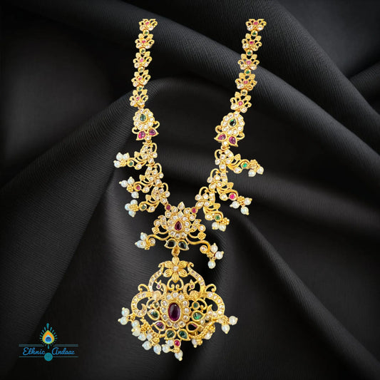 1gm Gold Ethnic Sets: high quality, perfect for traditional wear, set with semi precious ruby emerald and stones