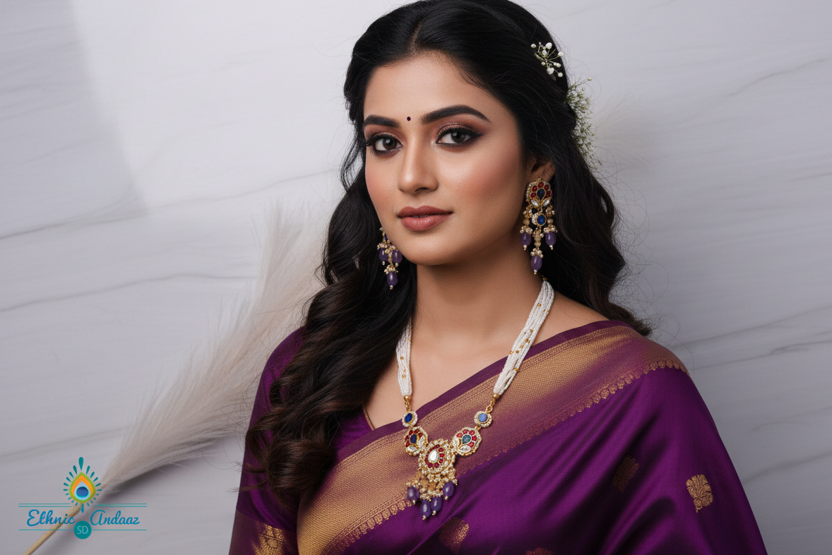 Elevate your elegance with the Tanmani set, featuring a lustrous pearl necklace paired with a stunning pachi kundan pendant and matching earrings. This exquisite design blends traditional craftsmanship with timeless beauty, perfect for adding a touch of sophistication to any outfit. Ideal for special occasions or gifting.